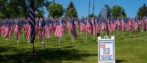 This Memorial weekend, May 23-25, volunteers will gather at Russ Freeman Park to post one thousand American flags for the Idaho Falls annual Field of Honor® flag display which has happened every Memorial Day weekend since 2012. The event will be hosted again by the Idaho Falls Exchange Club. This sea of red, white and blue waving in the breeze will fly as a tribute dedicated to benefit local Veterans Groups, local Child Abuse Prevention Agencies, and Bonneville-Idaho Falls Crime Stoppers.